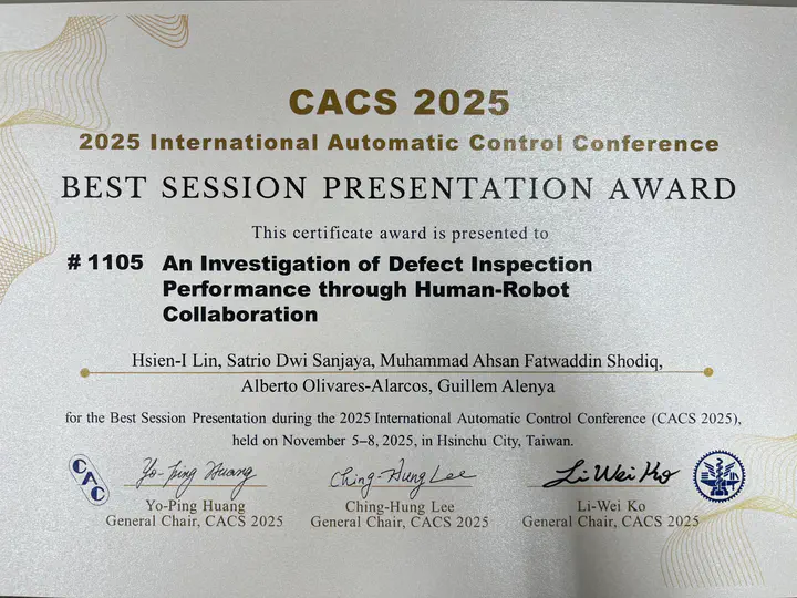 Oral presentation of our paper: An Investigation of Defect Inspection Performance through Human-Robot Collaboration. The article presents a collaborative human-robot inspection approach that combines high-throughput automated robot inspection with reliable and flexible human oversight.